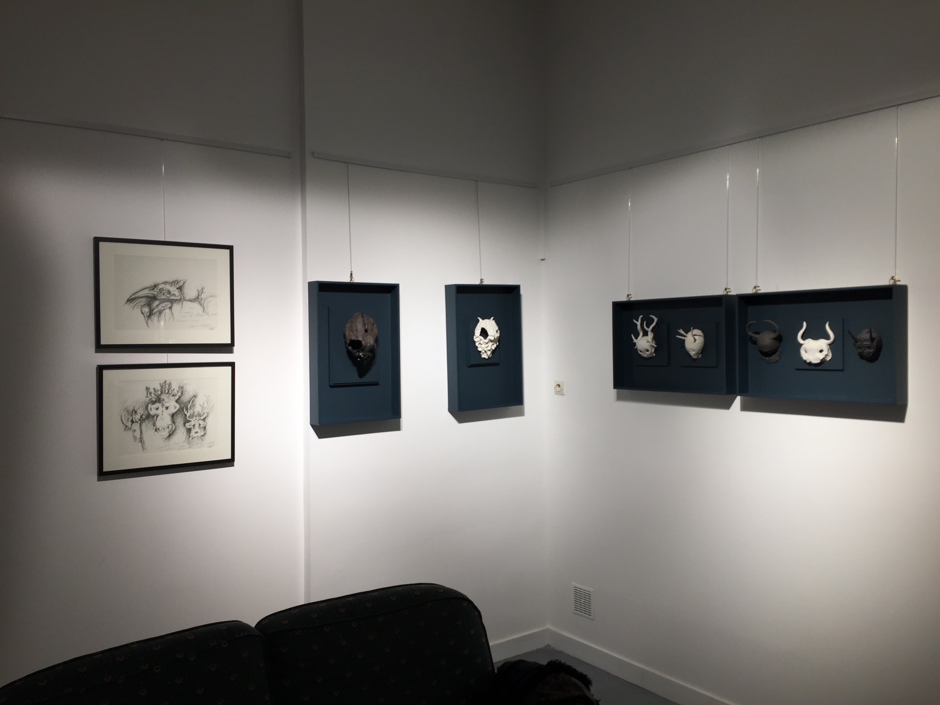 Je suis une Collectrice d’imaginaires. J’aime m’inventer une histoire personnelle. Au gré de ma pratique, je constitue un bestiaire fantastique. Créatures empreintes d’un inconscient collectif mythique, glanées au plus profond de chacun, intimement liées aux rencontres de différentes cultures et à l’observation des éléments fondateurs de la nature. L’eau, l’air, la Terre, le feu : indispensables à la création céramique. Accompagné de dessin préparatoire, je présente une série de masque en terre et autres chimères, bestioles en porcelaine ou grès noir. Terre de contrastes, terre onirique.